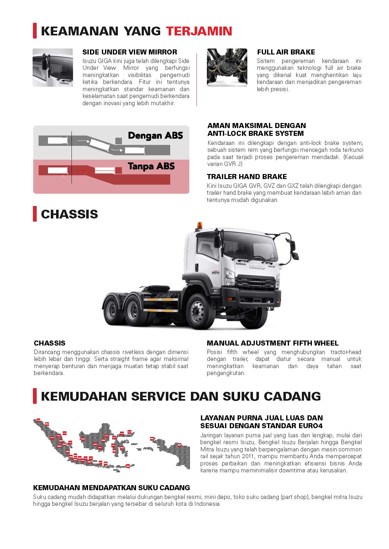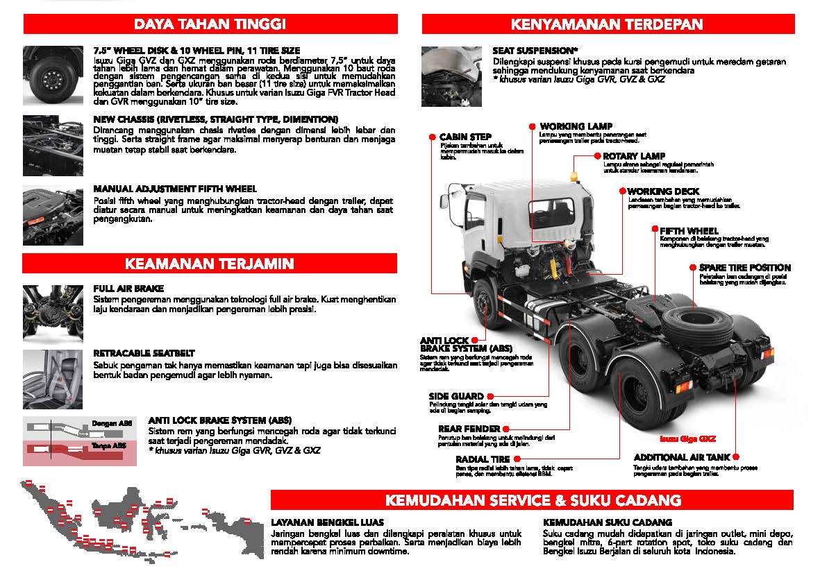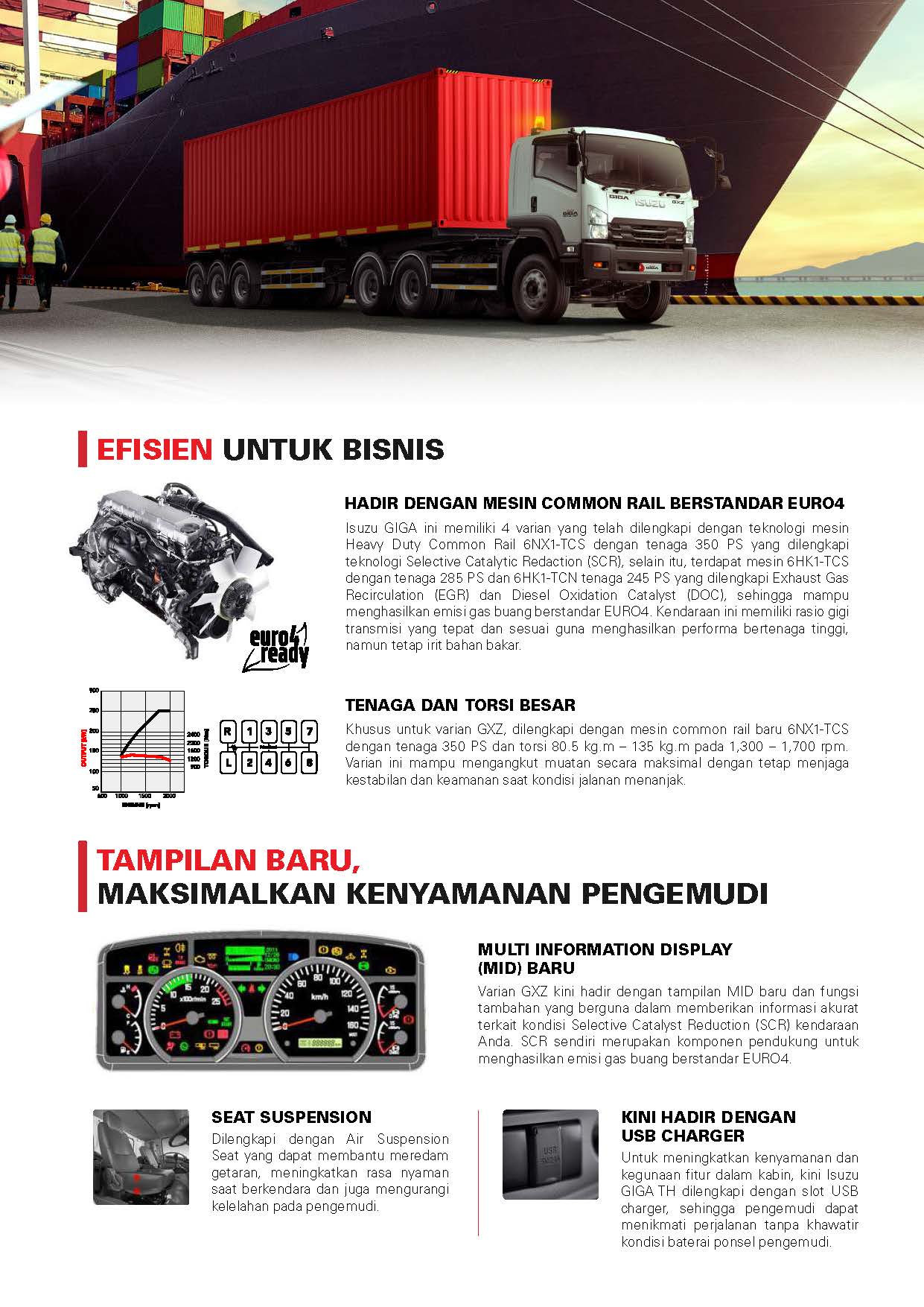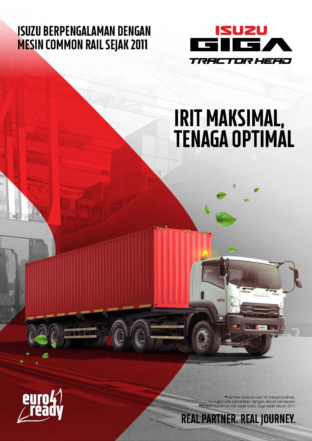 Isuzu Giga Tractor Head, Efisien untuk Bisnis. Hadir dengan mesin Common Rail berstandar Euro4. Ketika jarak jauh, medan dan beban berat adalah makanan sehari-hari bisnis Anda, maka Anda tak sekadar membutuhkan truk yang tangguh.