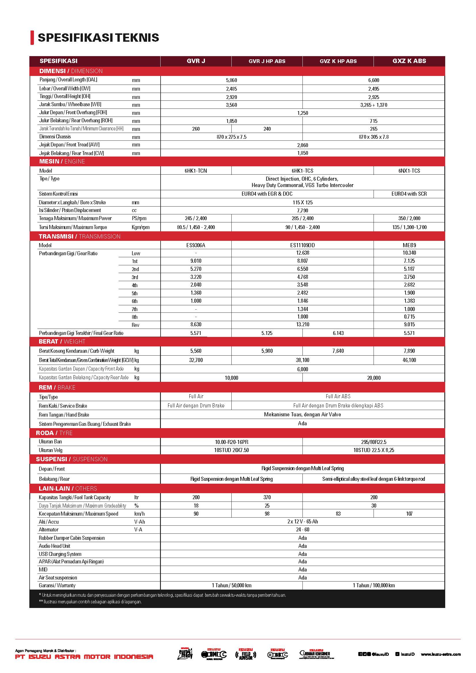 Khusus untuk varian GXZ, dilengkapi dengan mesin common rail baru 6NX1-TCS dengan tenaga 350 PS dan torsi 80.5 kg.m – 135 kg.m pada 1,300 – 1,700 rpm. Varian ini dipastikan mampu mengangkut muatan secara maksimal dengan tetap menjaga kestabilan dan keamanan saat kondisi jalanan menanjak.